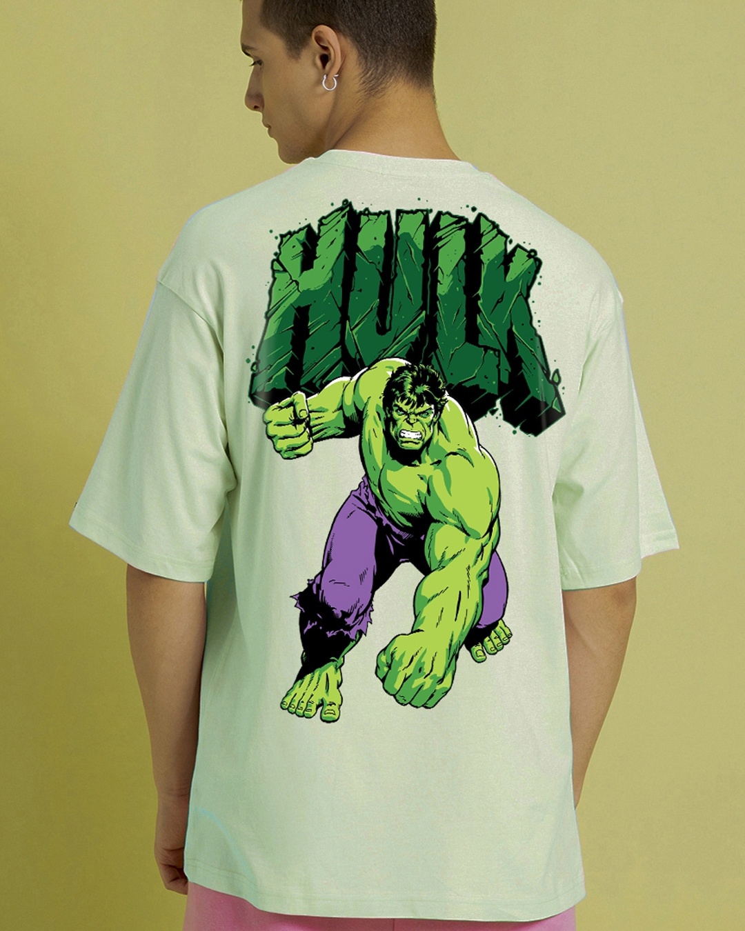 Men's Green The Incredible Hulk Graphic Printed Oversized T-shirt