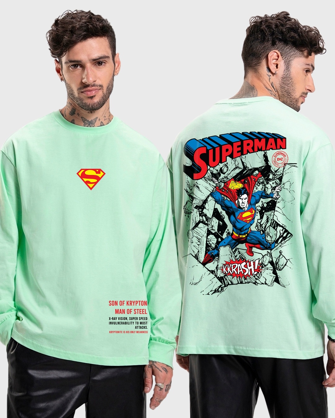 Men's Green The Man Of Steel Graphic Printed Oversized T-shirt