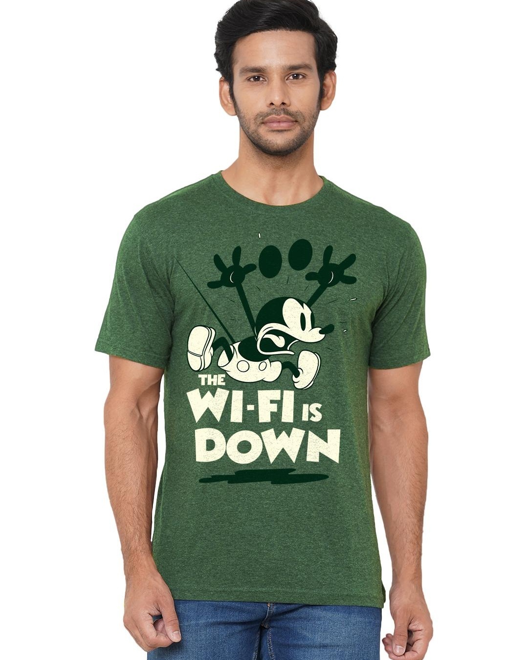 Men's Green The Wifi Is Down Graphic Printed T-shirt