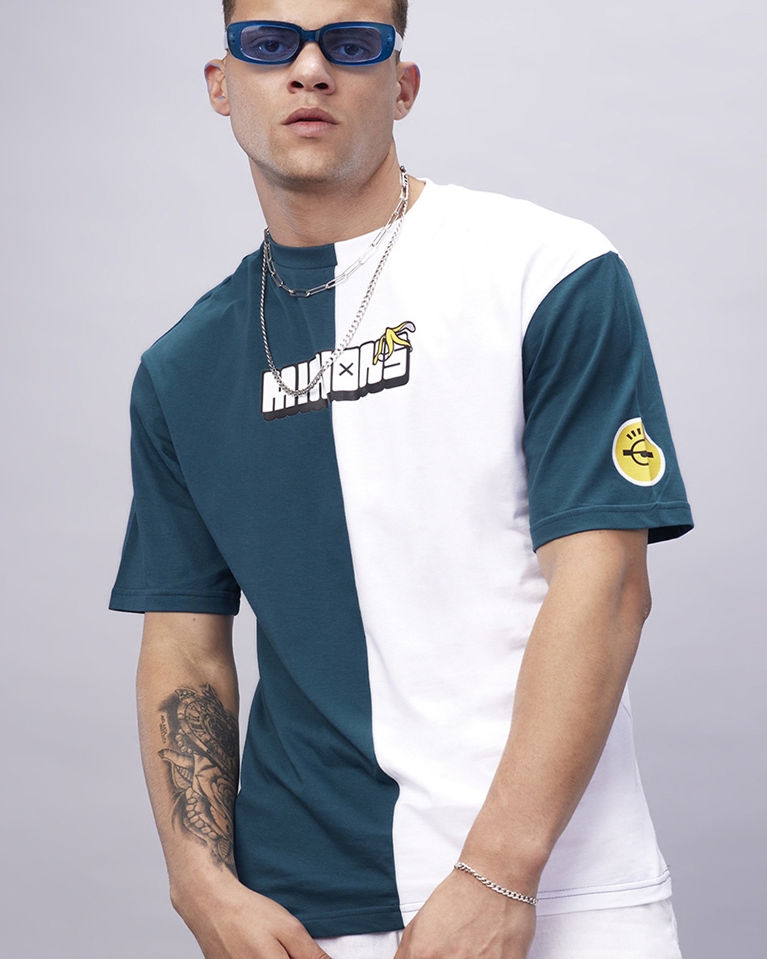 Men's Green & White Trio Minions Graphic Printed Oversized T-shirt