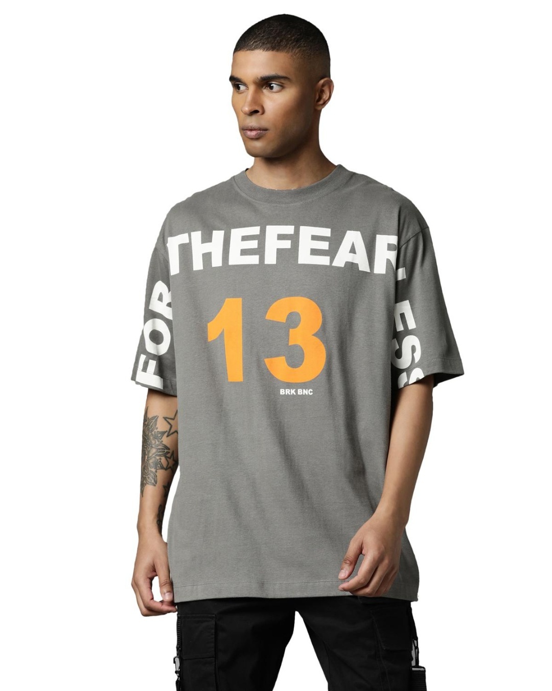 Men's Grey 13 For The Fearless Typography Oversized T-shirt