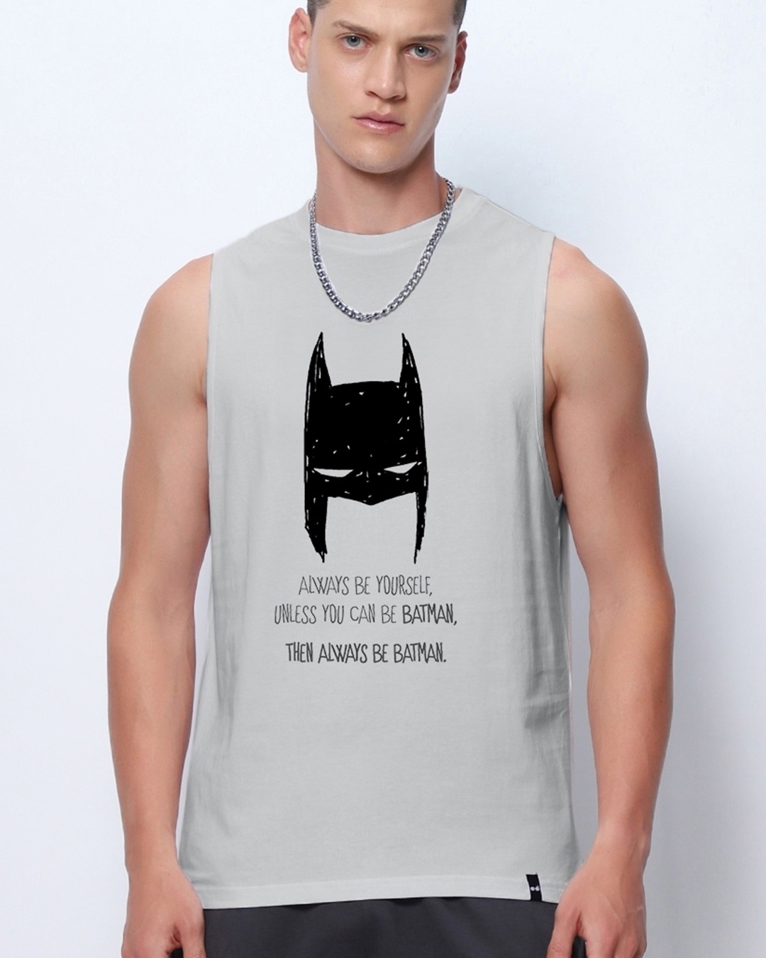Men's Grey Be Batman Graphic Printed Oversized Vest