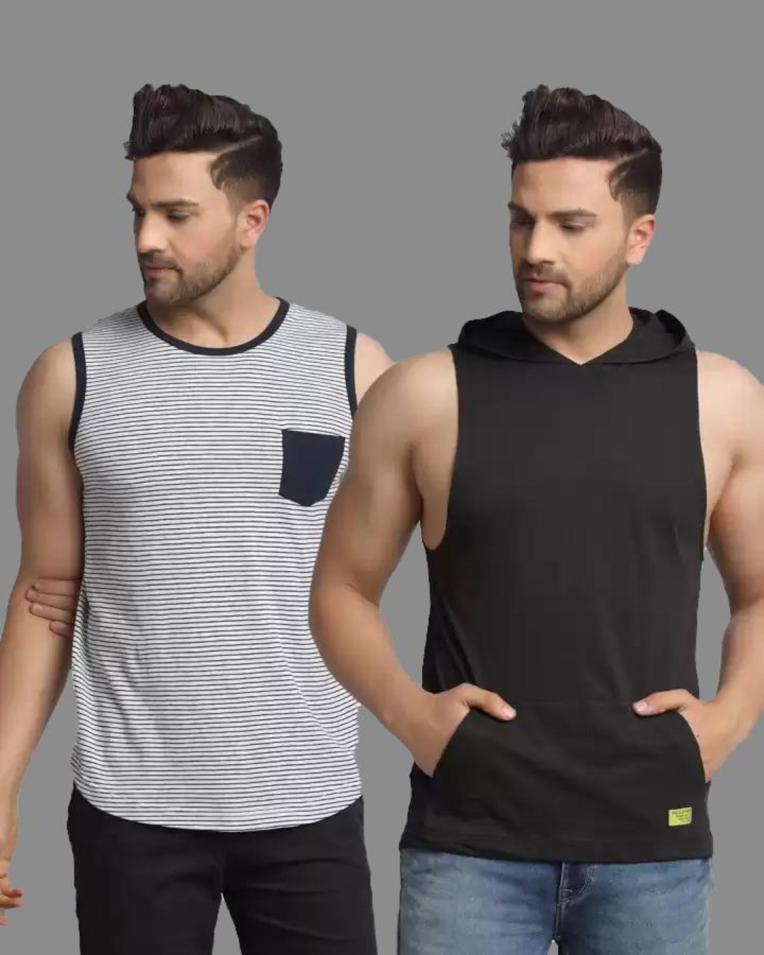 Pack of 2 Men's Grey & Black Striped Slim Fit T-shirts