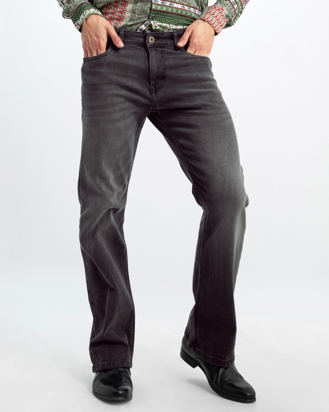 Men's Grey Bootcut Oversized Jeans