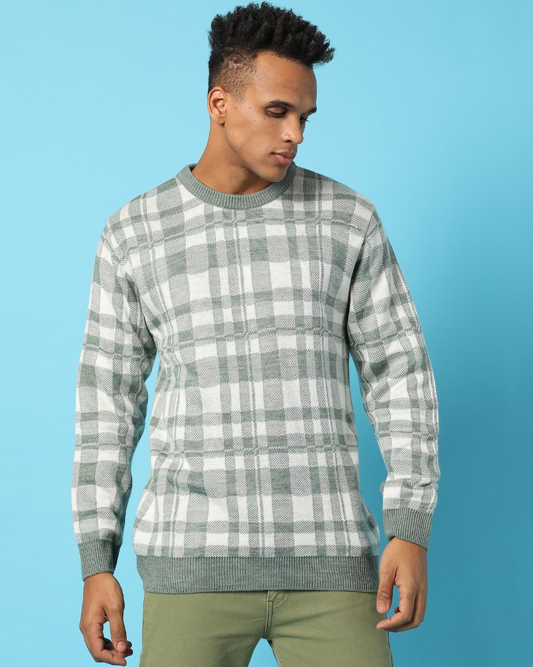 Men's Grey Checked Sweater