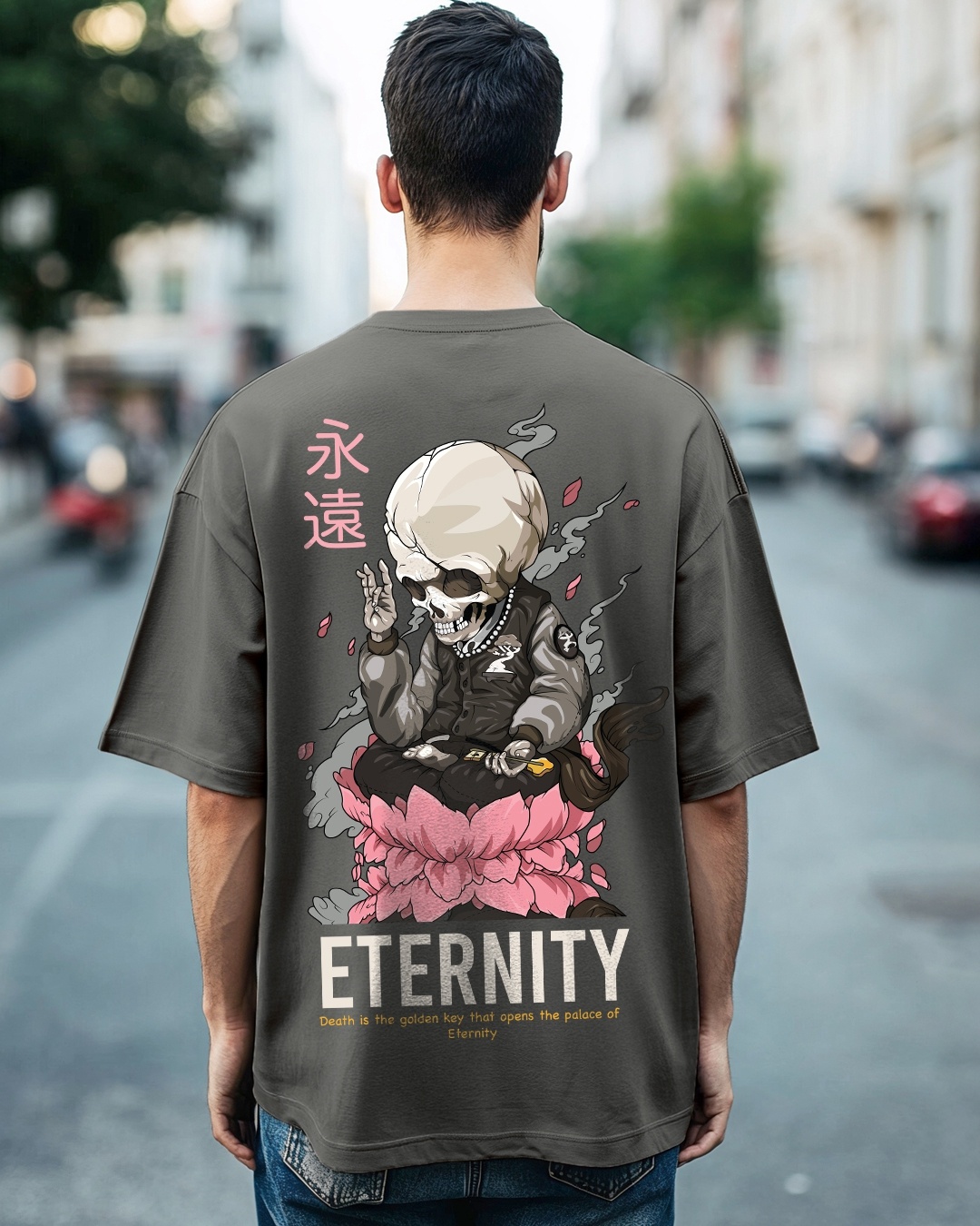 Men's Grey Eternity Graphic Printed Relaxed Fit T-shirt