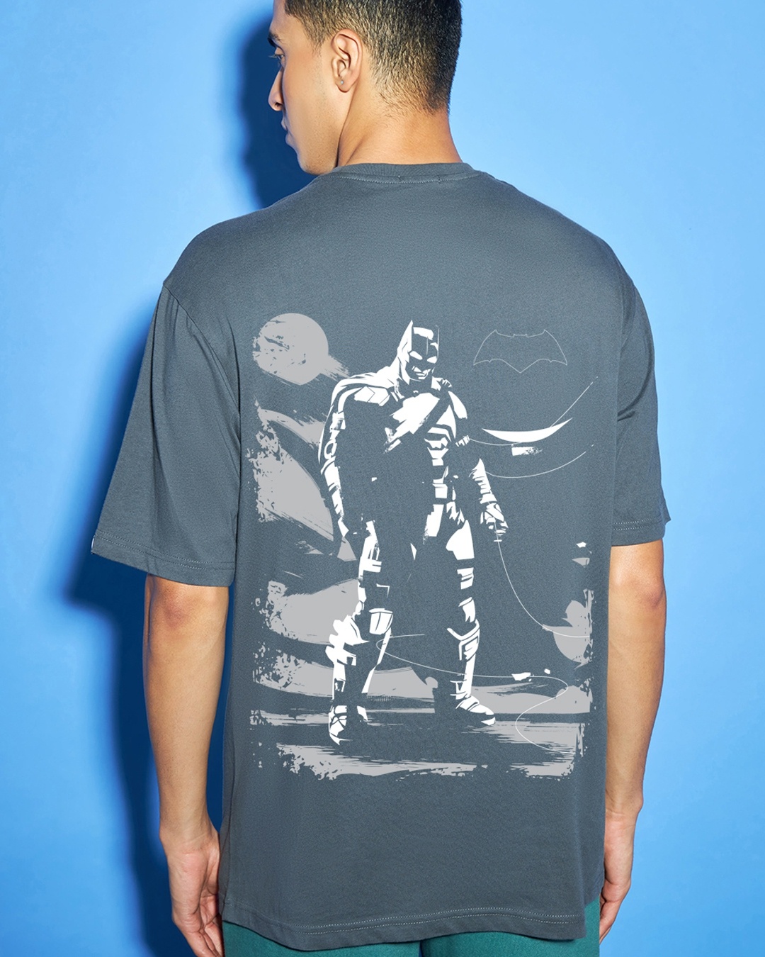 Men's Grey Gotham's Devil Graphic Printed Oversized T-shirt