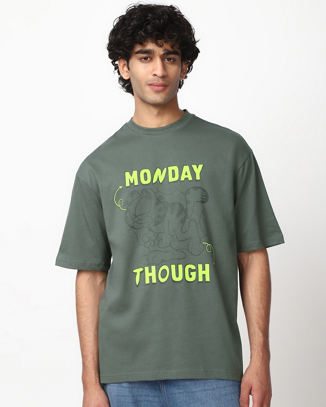 Men's Grey Monday Though Graphic Printed Oversized T-shirt