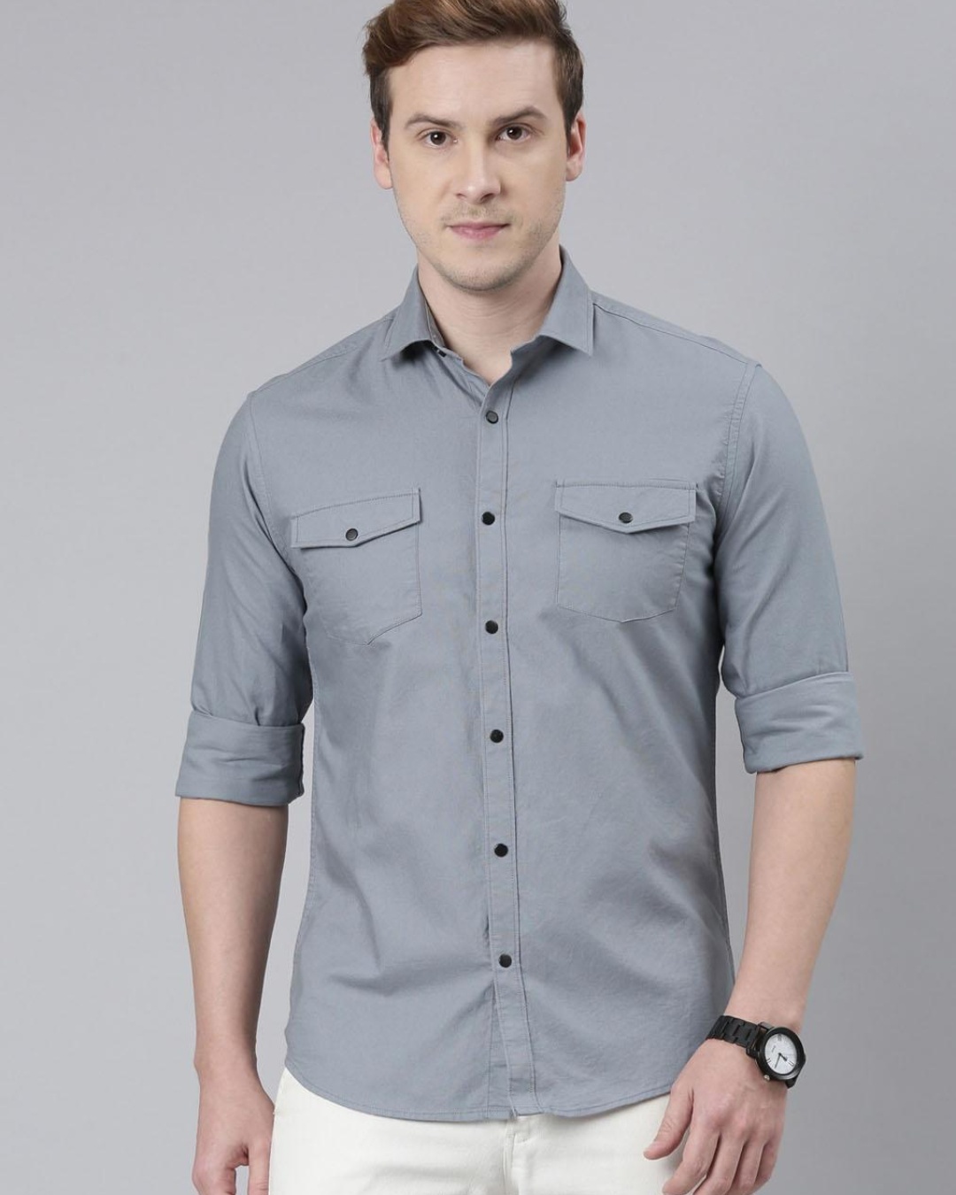 Men's Grey Slim Fit Cargo Shirt