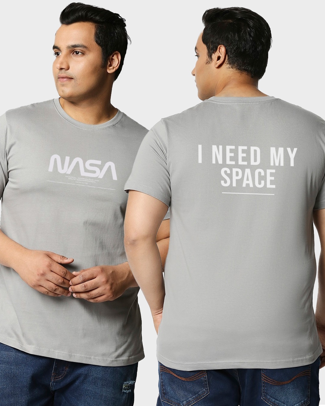 Men's Grey Spaced NASA Typography Plus Size T-shirt