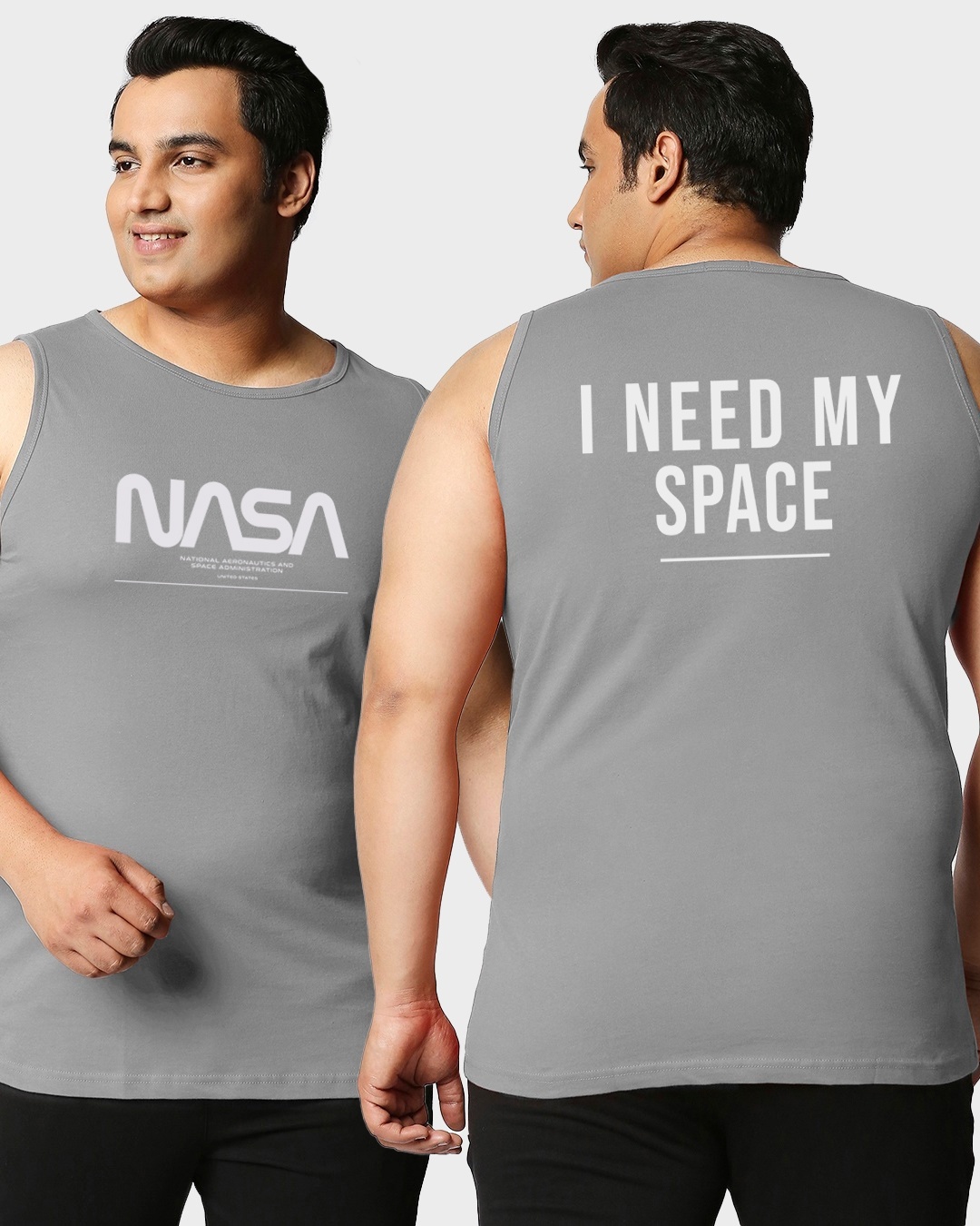 Men's Grey Spaced NASA Graphic Printed Plus Size Vest