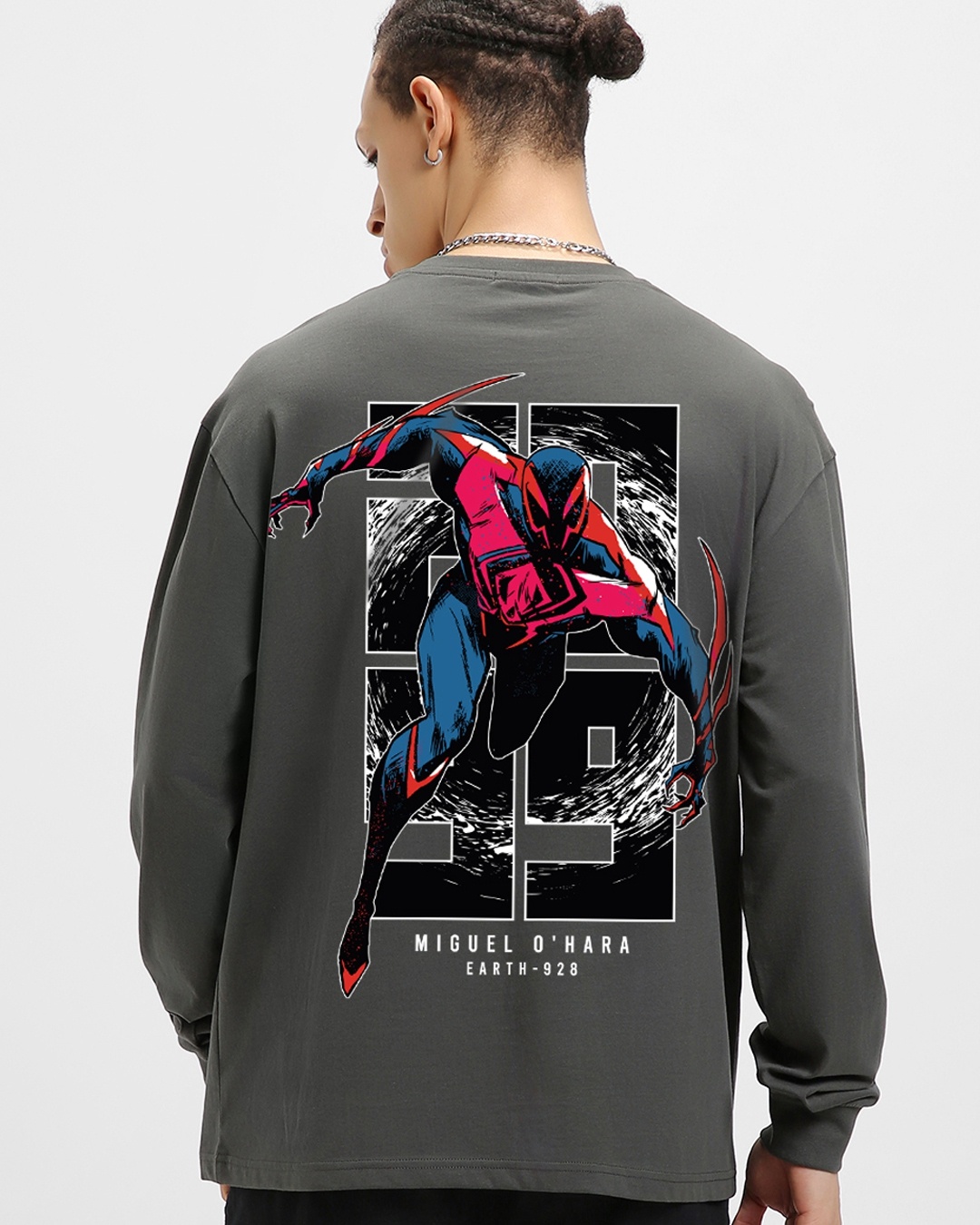 Men's Grey Spider Graphic Printed Oversized T-shirt