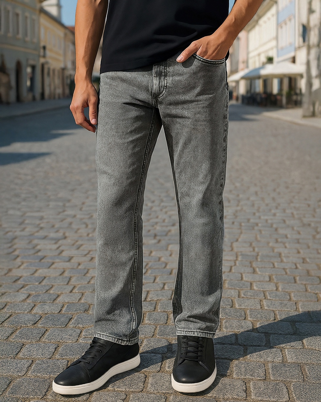 Men's Grey Washed Slim Straight Fit Stretchable Jeans