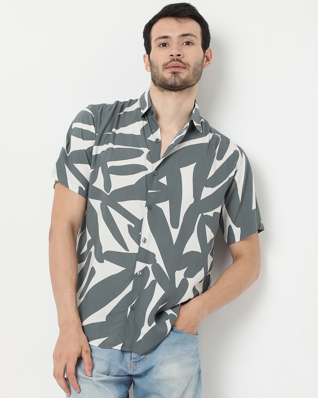 Men's Grey & White Abstract Printed Shirt