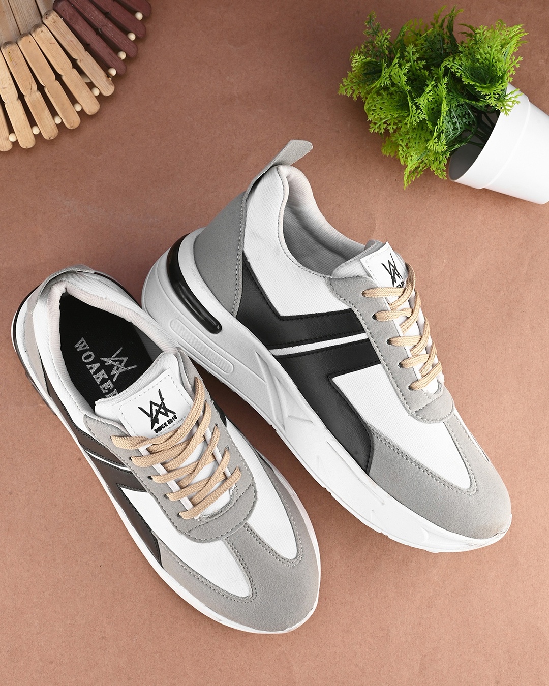Men's Grey & White Color Block Sneakers