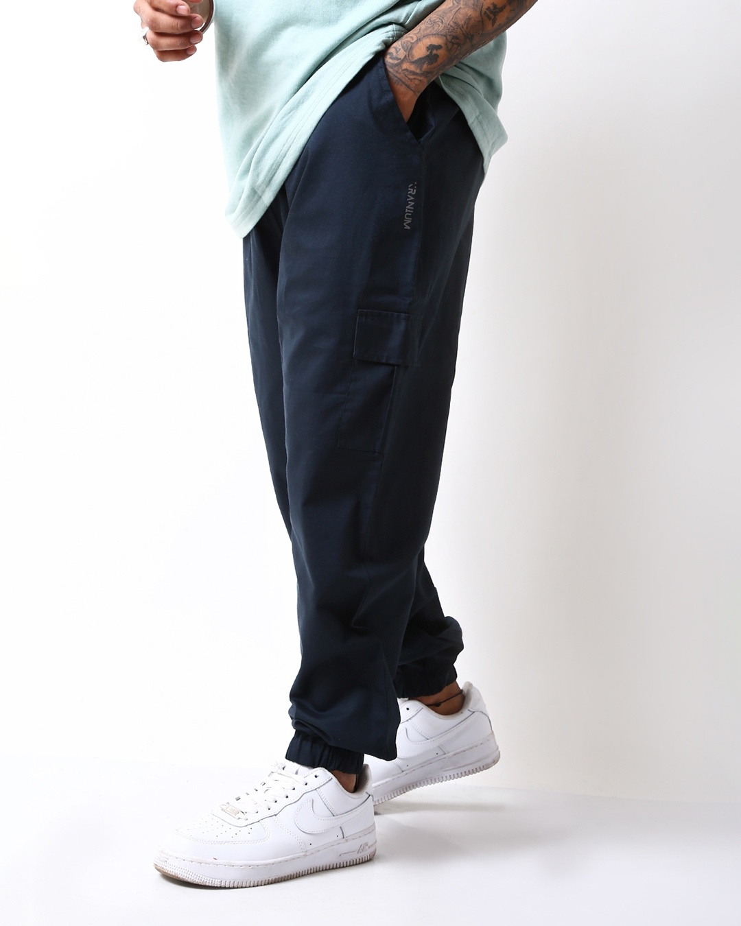 Men's Indigo Blue Loose Comfort Fit Cargo Joggers