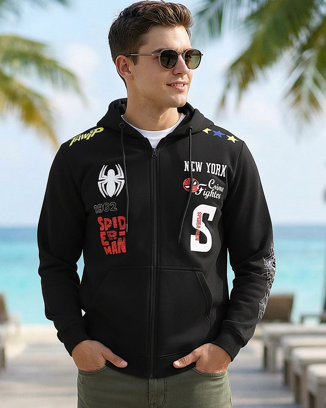 Men's Jet Black Crime Fighter Graphic Printed Hoodies