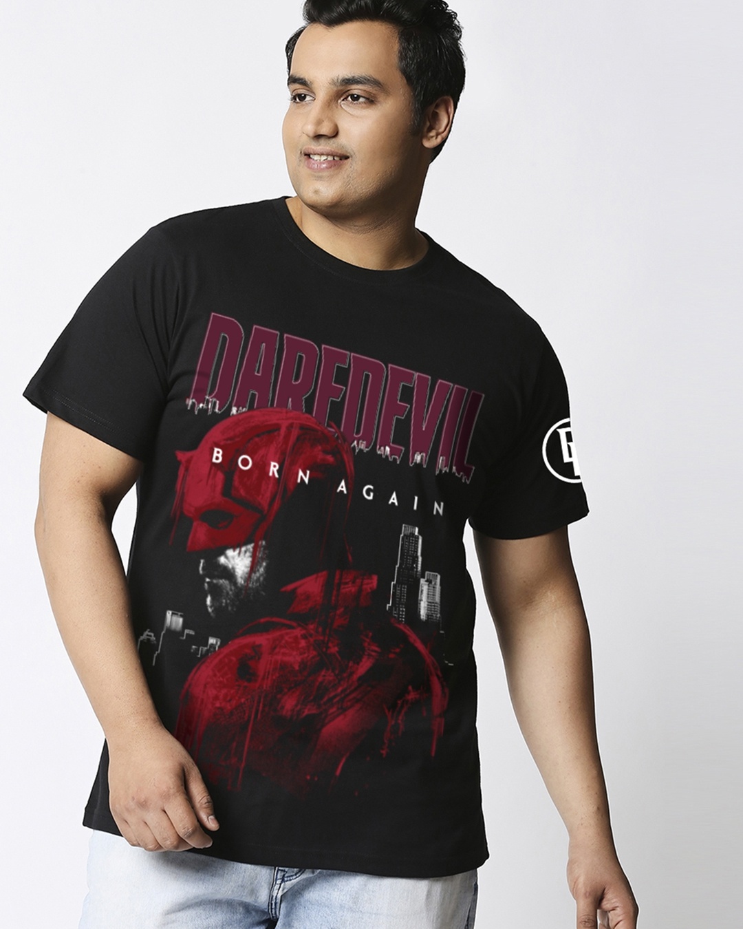 Men's Jet Black Dare Devil Born Graphic Printed Plus Size T-shirt