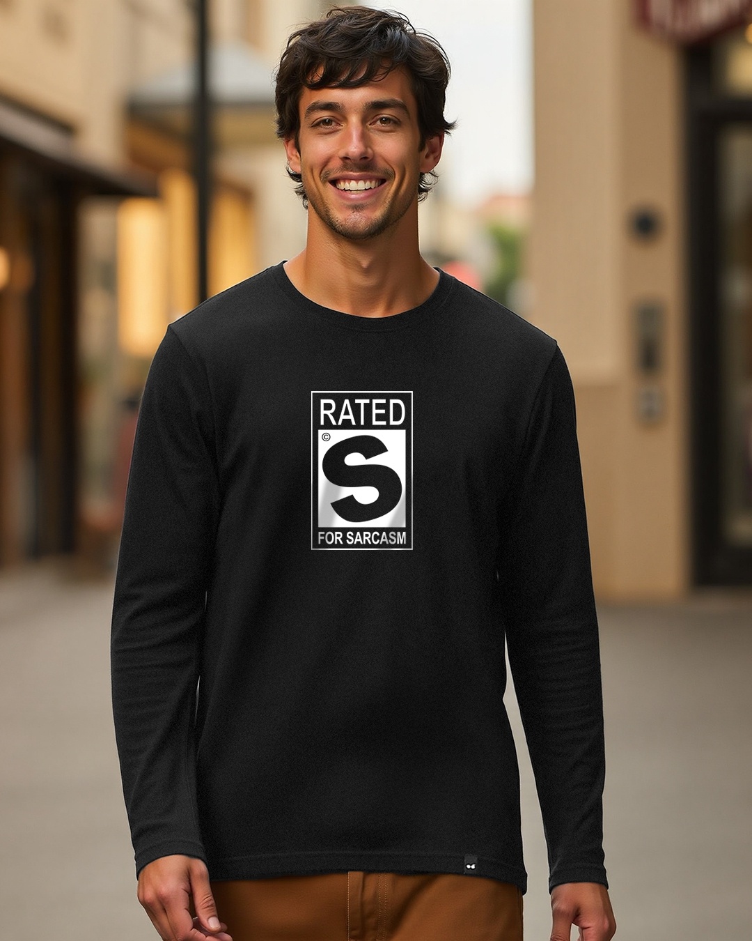 Men's Jet Black Rated S For Sarcasm Typography T-shirt