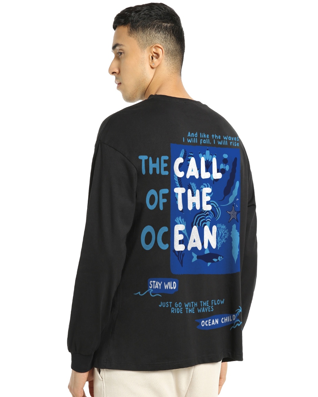 Men's Black Ocean Child Graphic Printed Oversized T-shirt
