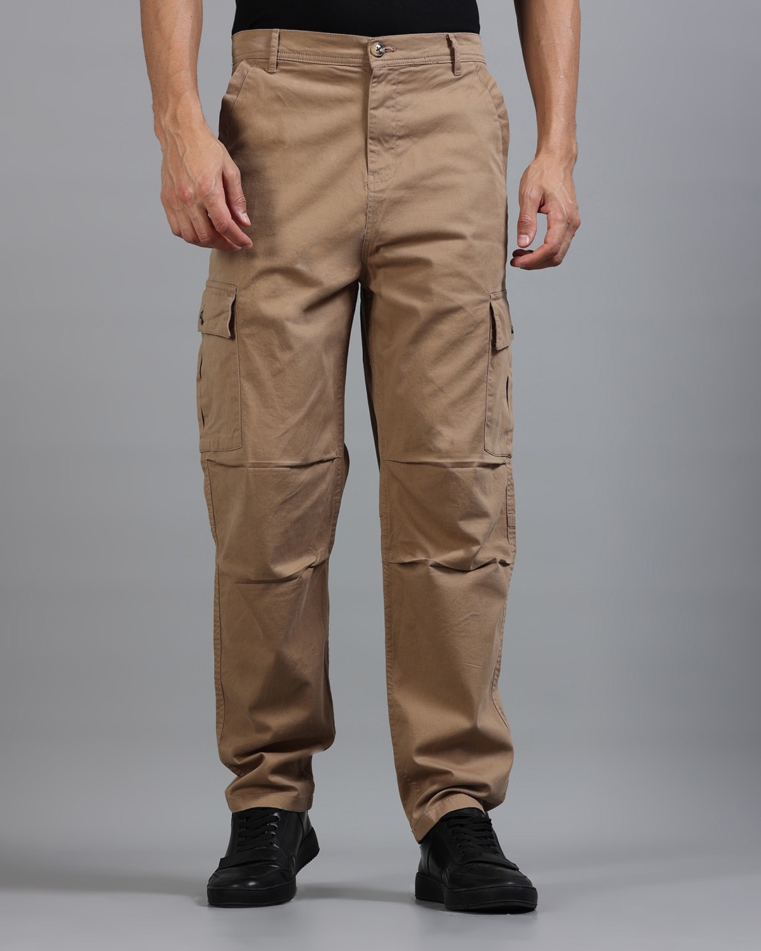 Men's Khaki Brown Relaxed Fit Cargo Pants
