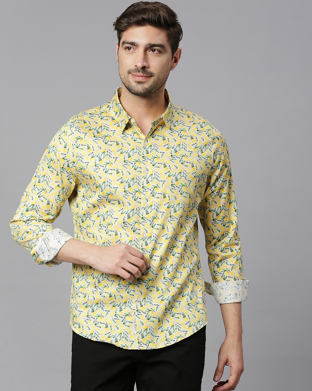 Men's Lemon Yellow All Over Printed Slim Fit Shirt