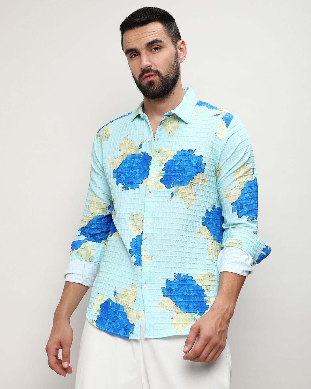 Men's Light Blue All Over Printed Shirt