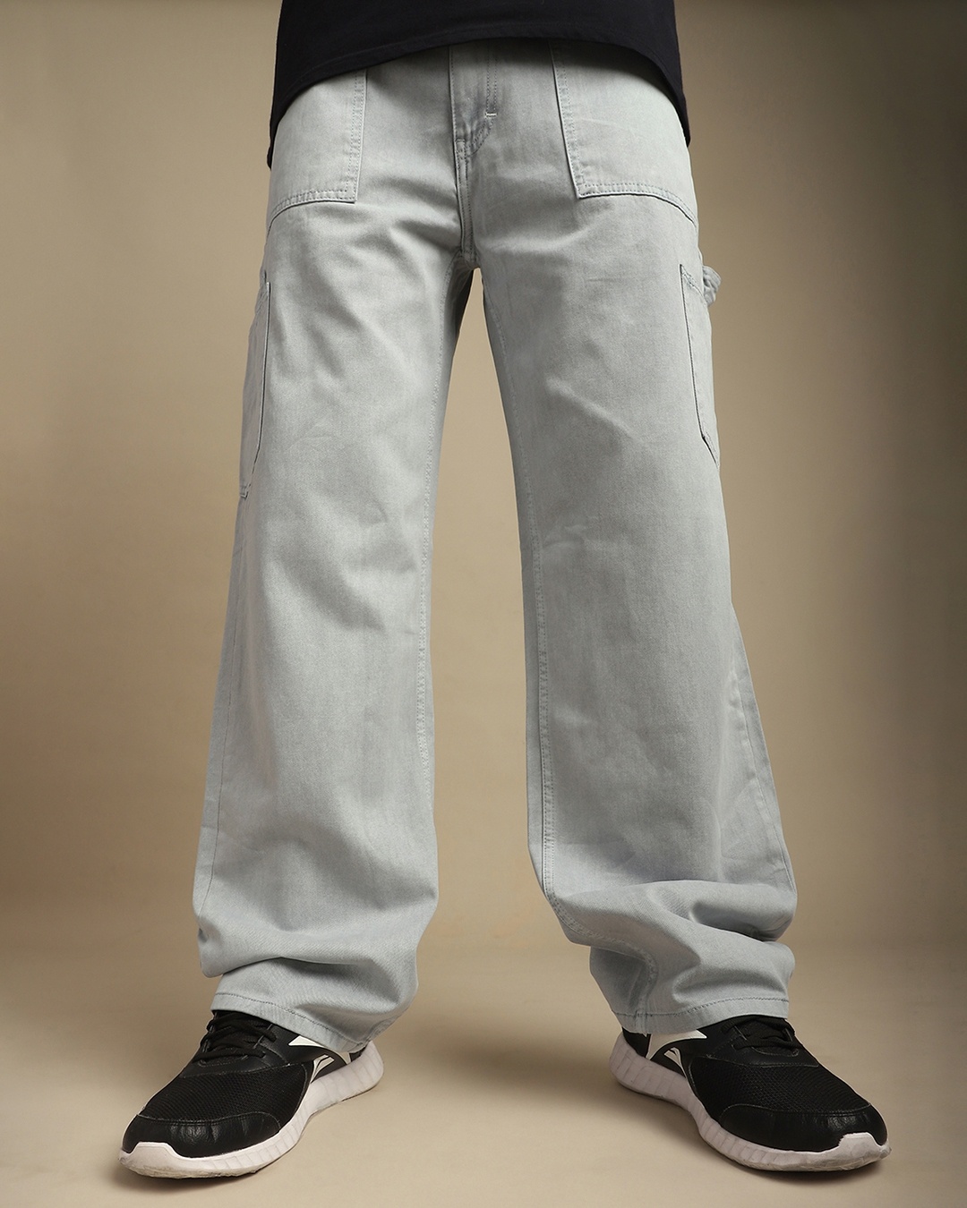 Men's Light Grey Relaxed Fit Cargo Carpenter Pants