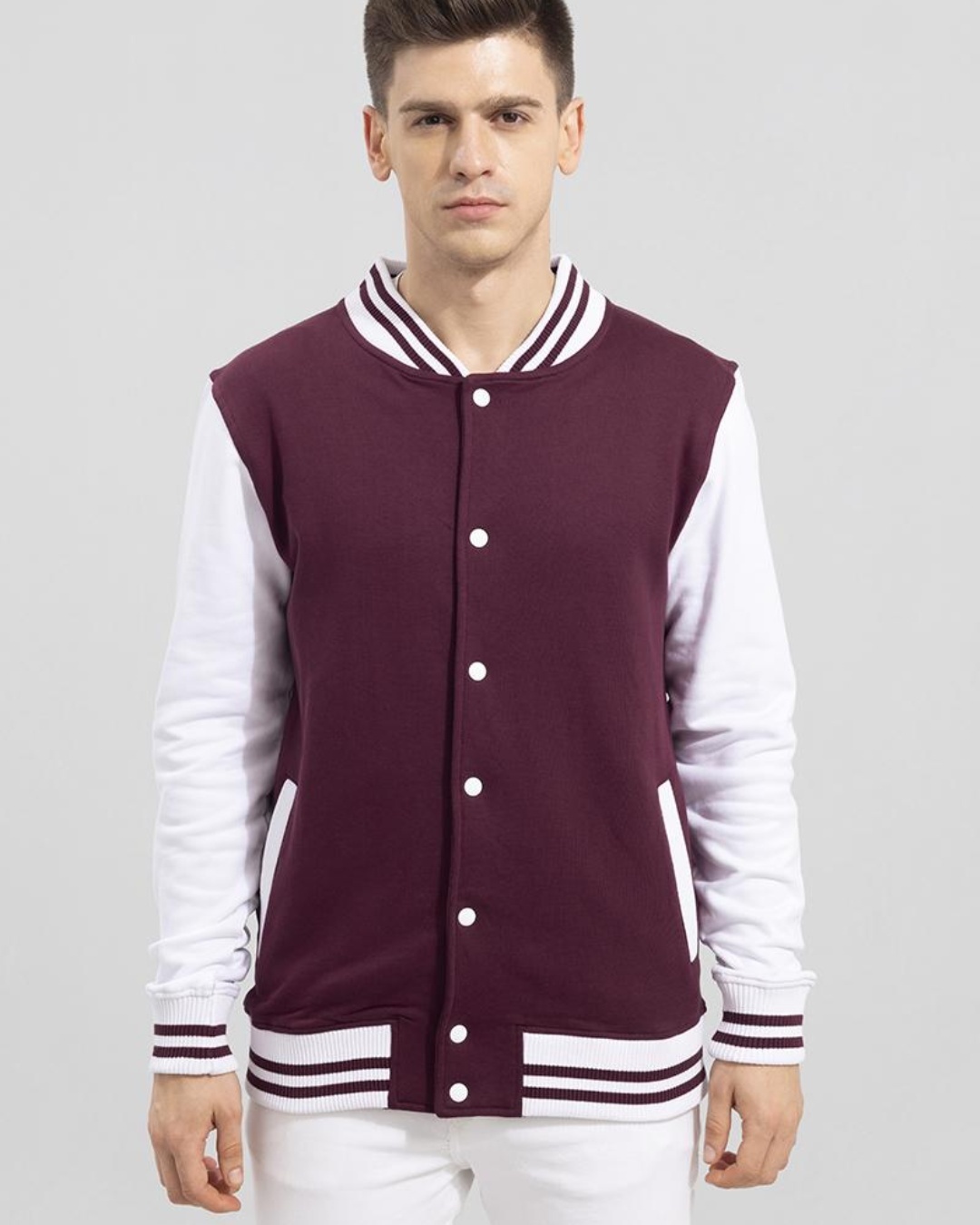 Men's Maroon & White Hawkins Color Block Varsity Jacket
