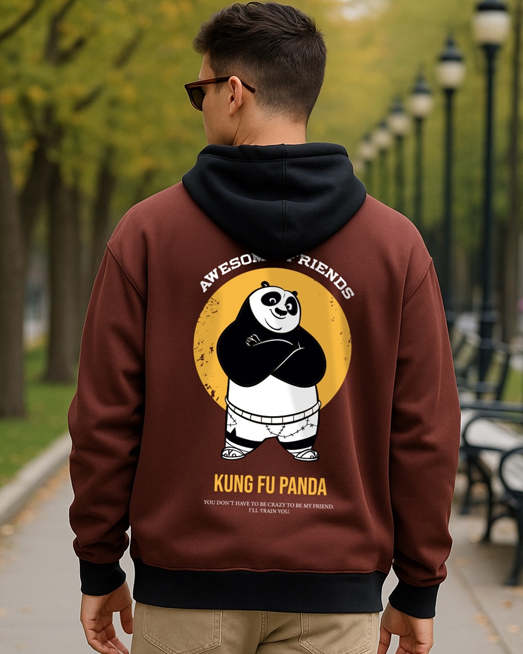 Men's Brown Kung Fu Panda Graphic Printed Oversized Hoodies