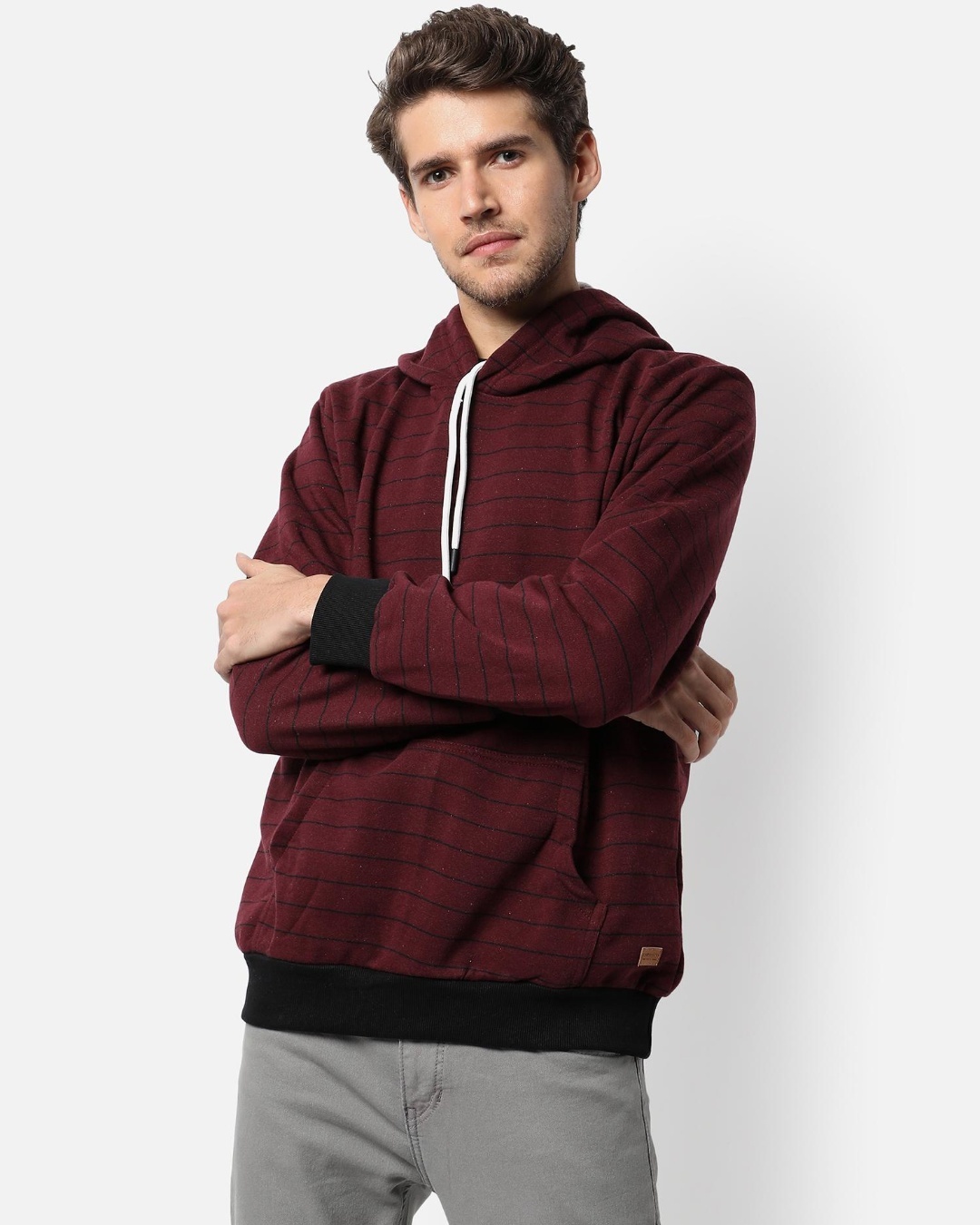 Men's Maroon Striped Hooded Sweatshirt