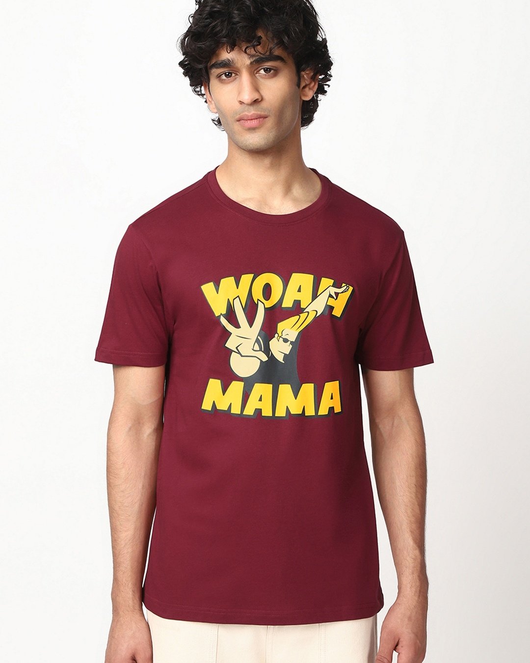Men's Maroon Woah Mama Graphic Printed T-shirt