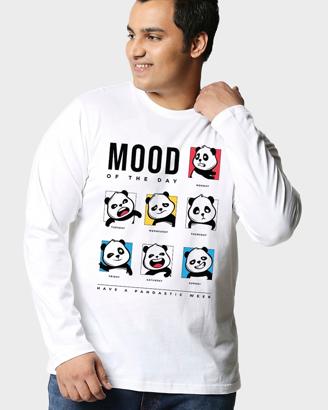 Men's White MOTD Panda Graphic Printed Plus Size T-shirt