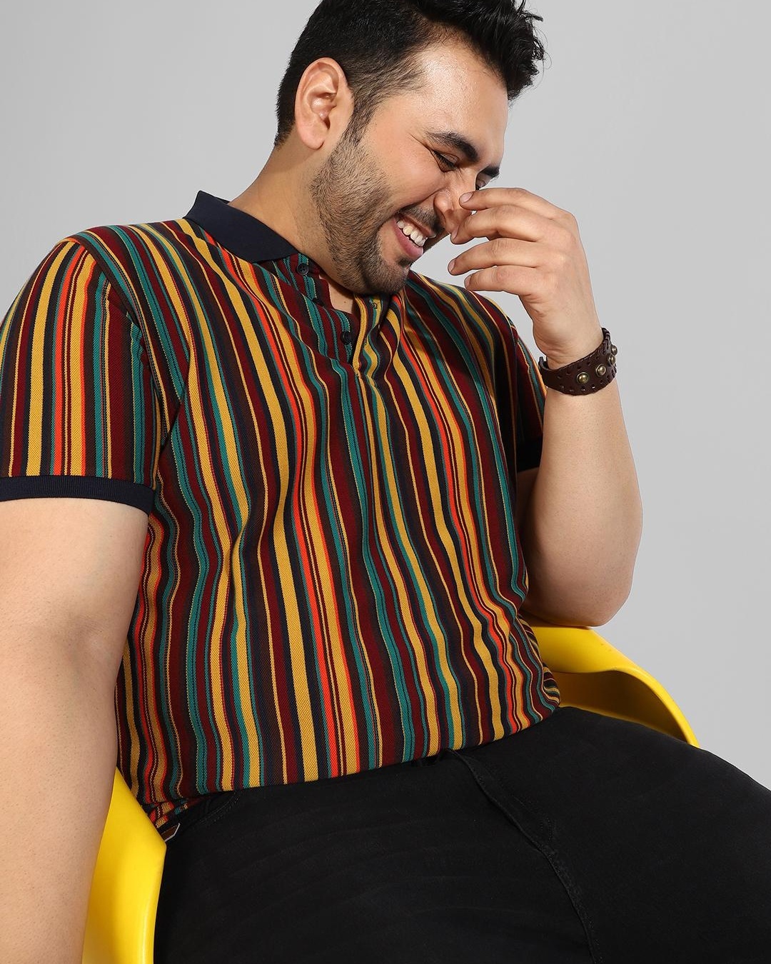 Men's Multicolor Striped Plus Size T-shirt