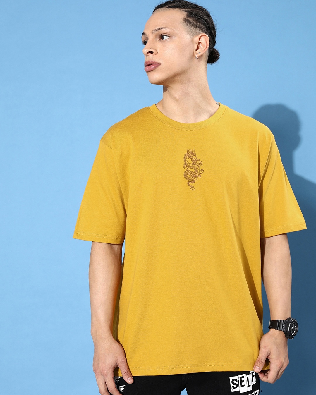 Men's Mustard Graphic Printed Oversized T-shirt