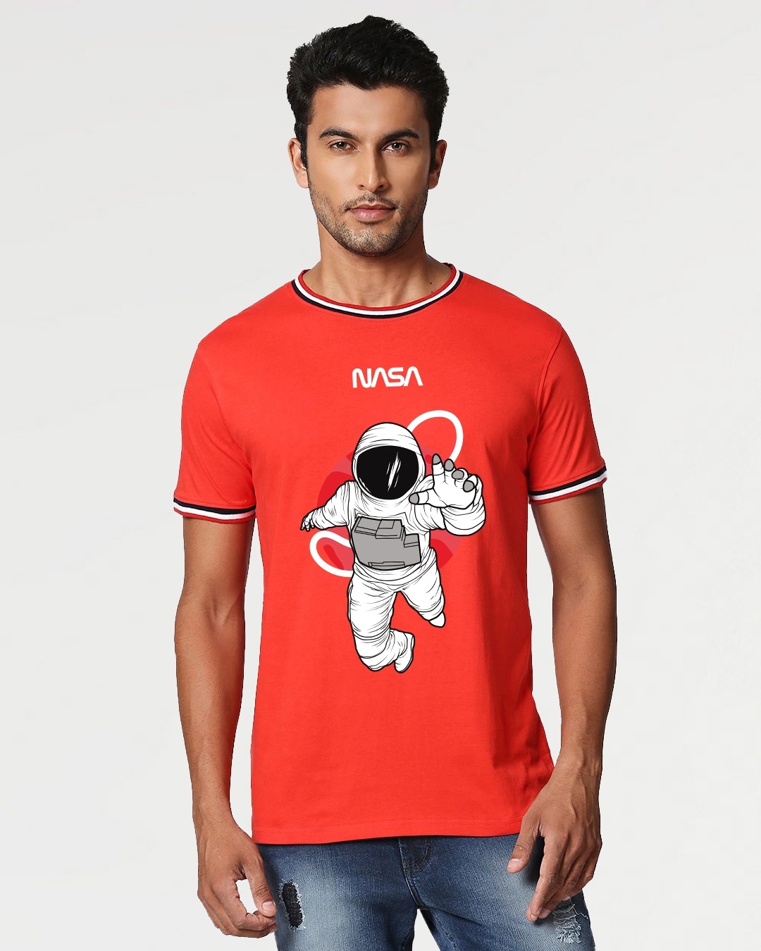 Men's Red NASA Astronaut Graphic Printed T-shirt