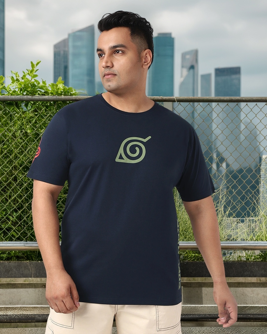Men's Navy Blue Copy Ninja Kakashi Graphic Printed Plus Size T-shirt