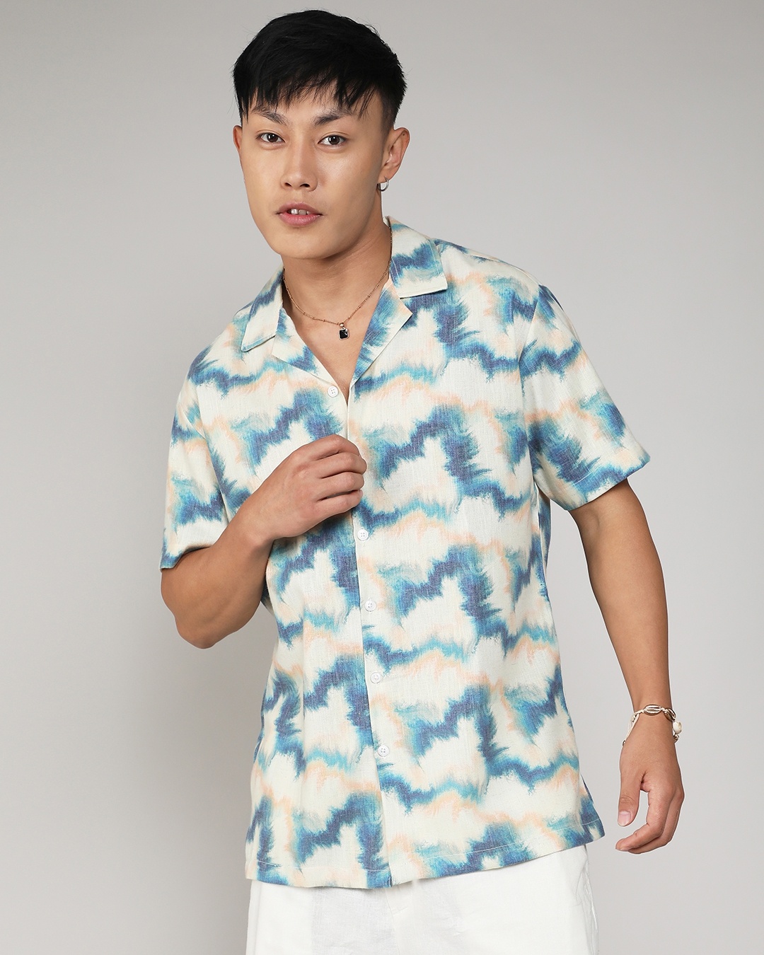Men's Navy Blue & Off White Tie & Dye Relaxed Fit Shirt