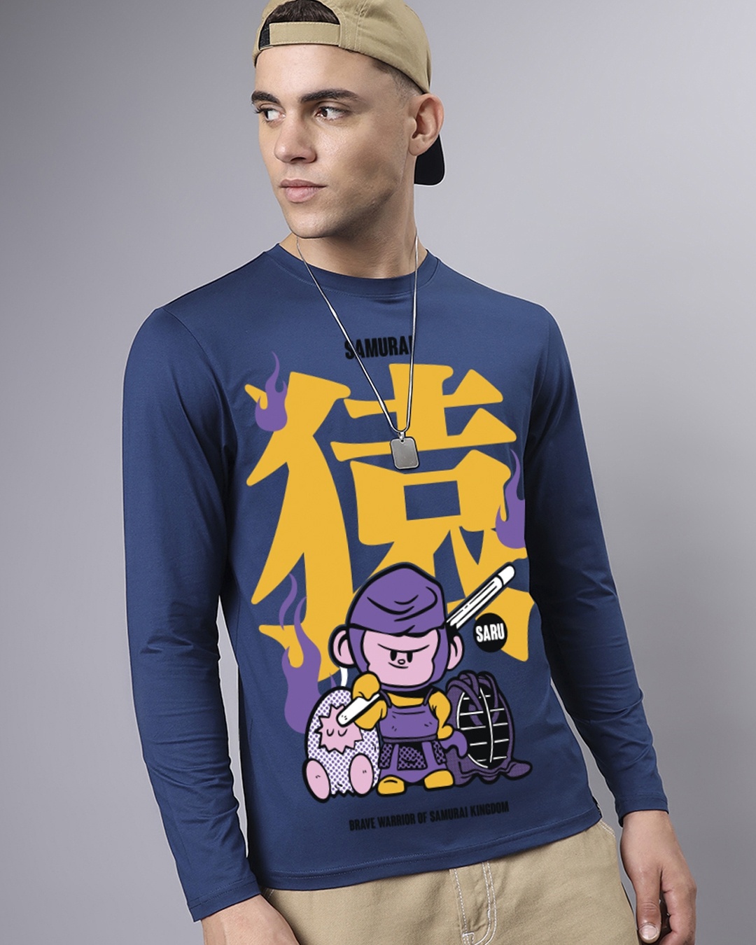 Men's Navy Blue Samurai Graphic Printed T-shirt