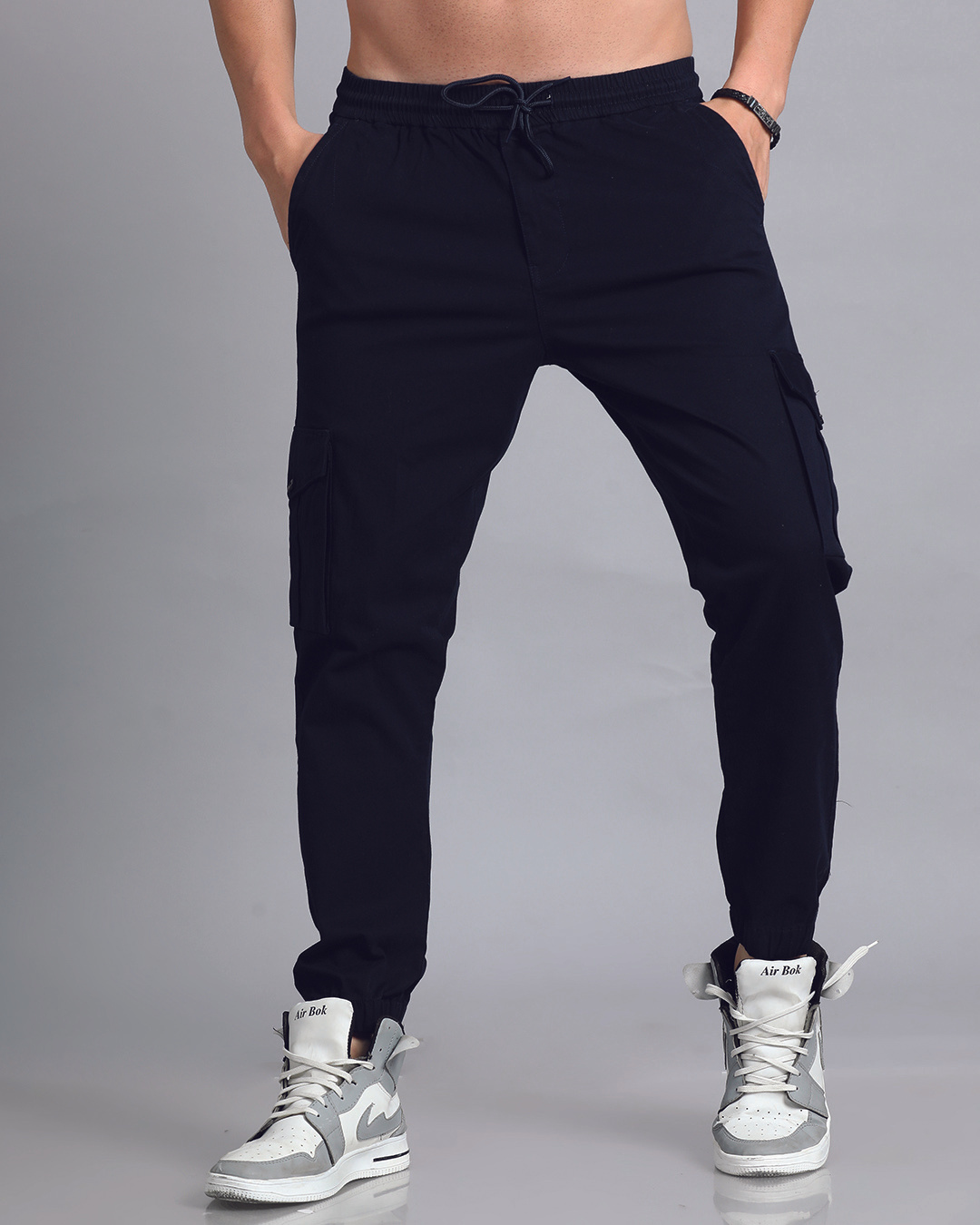 Men's Navy Blue Slim Fit Cargo Joggers