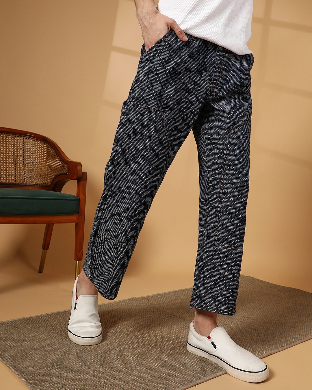 Men's Navy Blue Straight Fit Cargo Carpenter Jeans