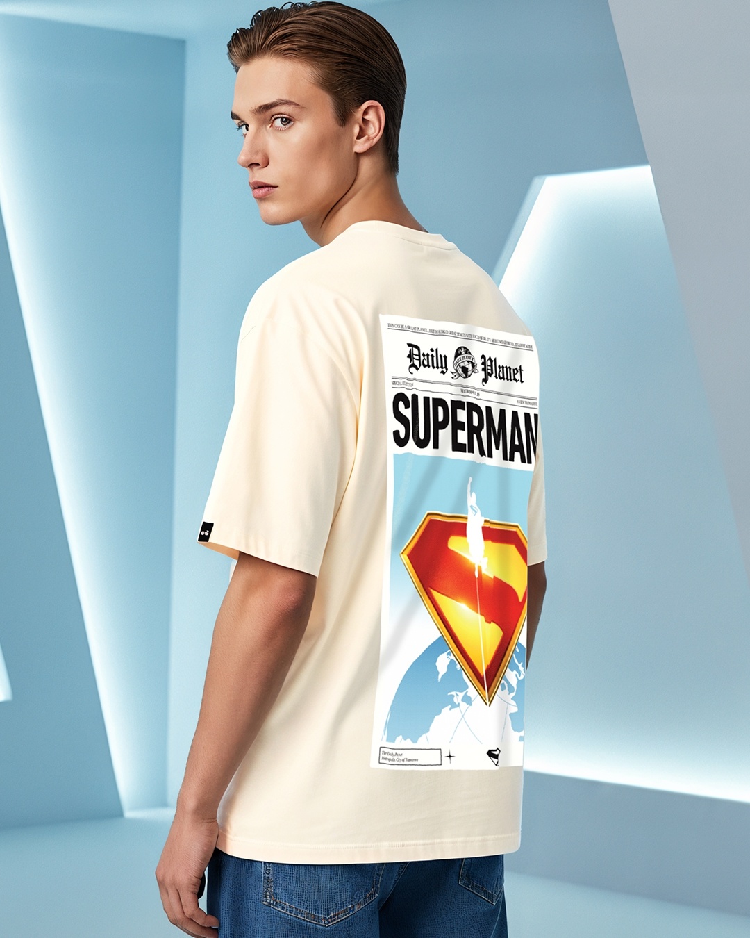 Men's Off White Daily Planet Graphic Printed Oversized T-shirt