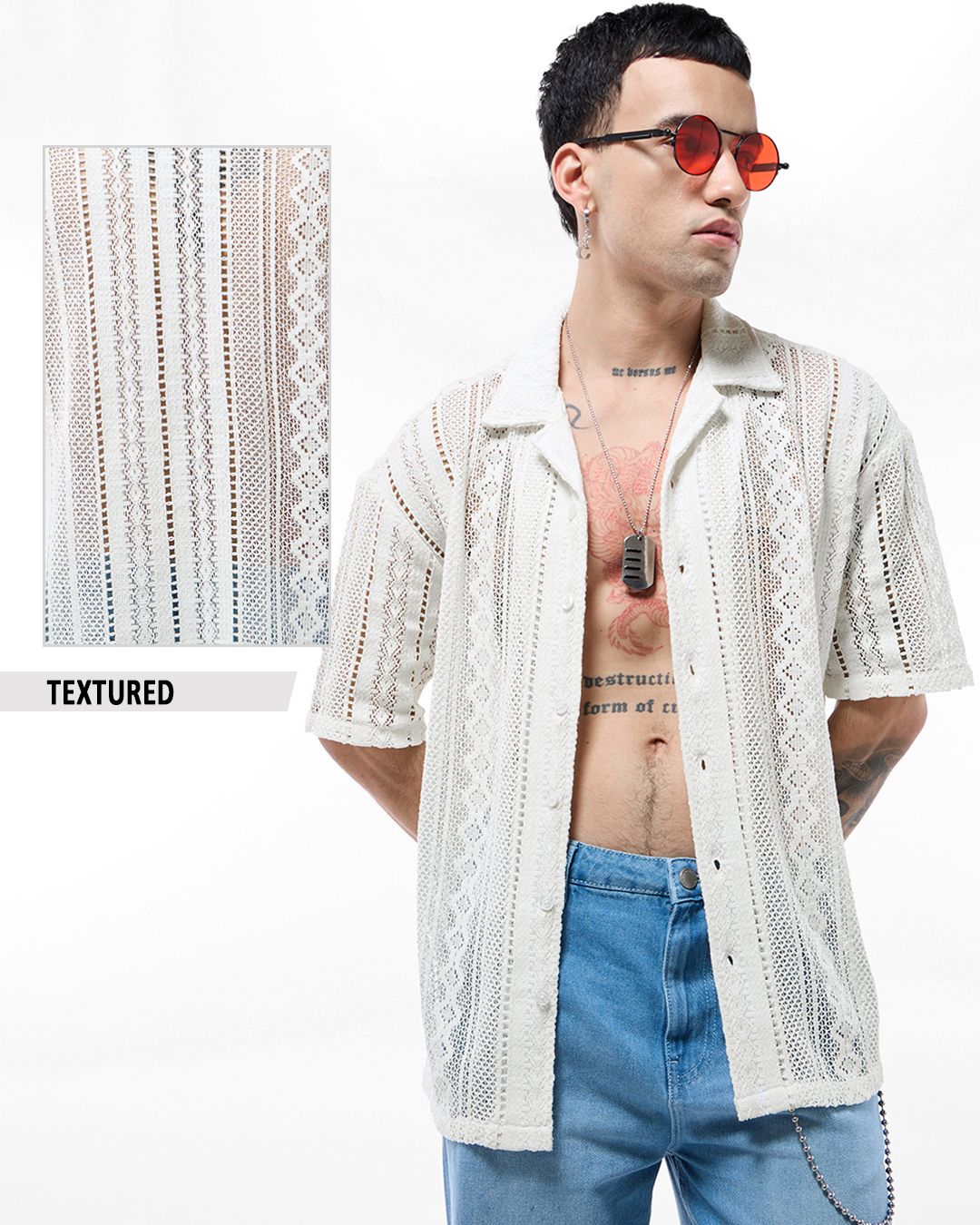 Men's Off White Oversized Crochet Shirt