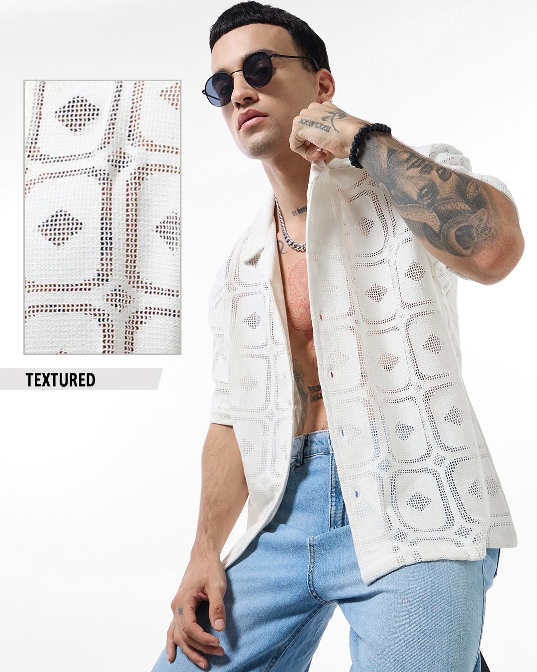 Men's Off White Oversized Crochet Shirt
