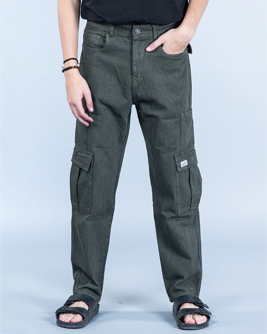 Men's Olive Green Baggy Fit Cargo Jeans