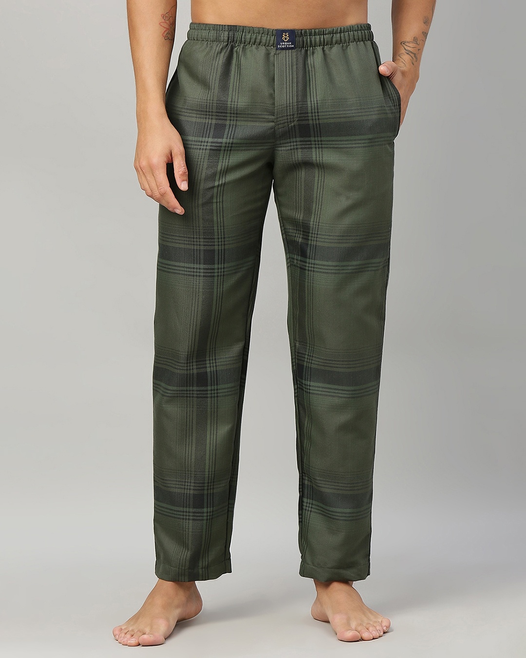 Men's Olive Green Checked Pyjamas