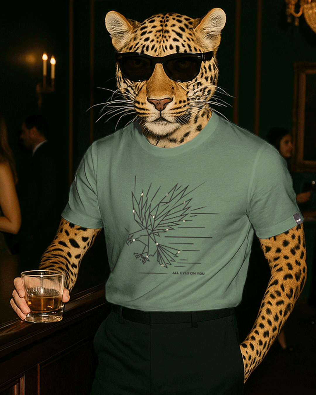 Men's Olive Green Eagle Graphic Printed T-shirt