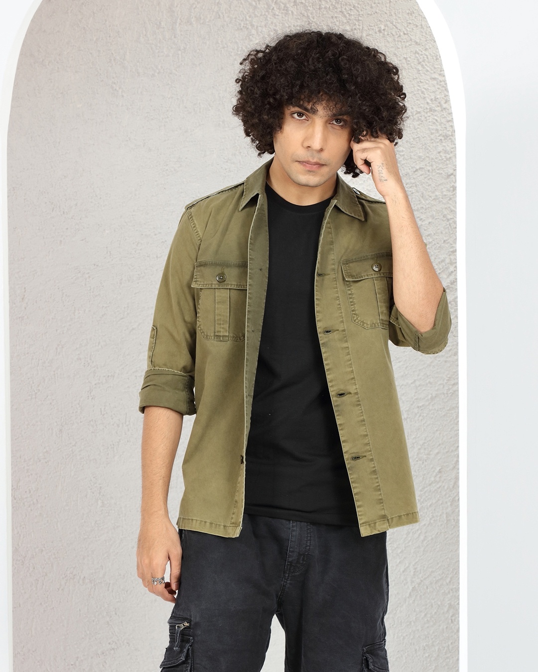 Men's Olive Green Oversized Shirt