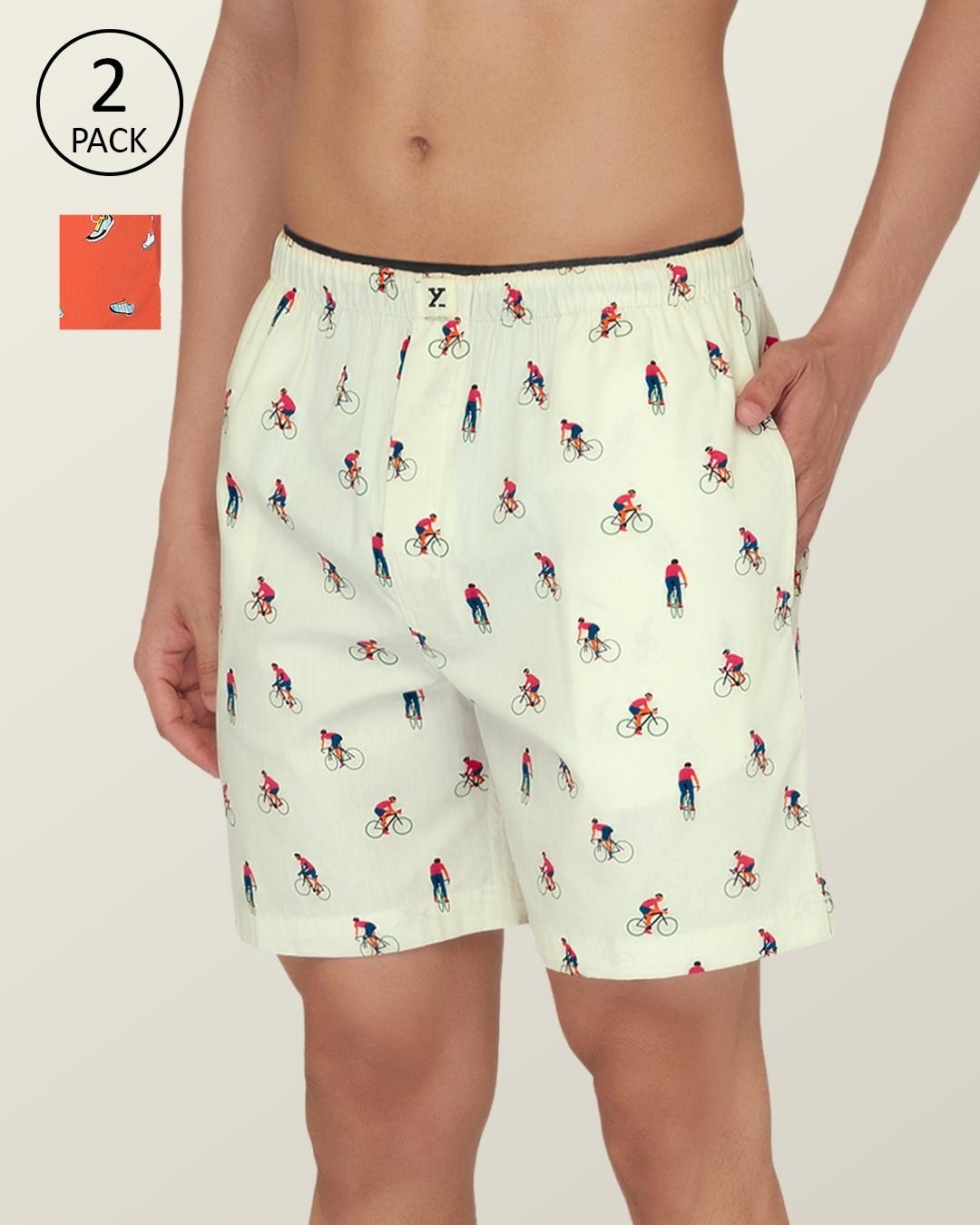 Pack of 2 Men's Orange & White All Over Printed Relaxed Fit Boxers