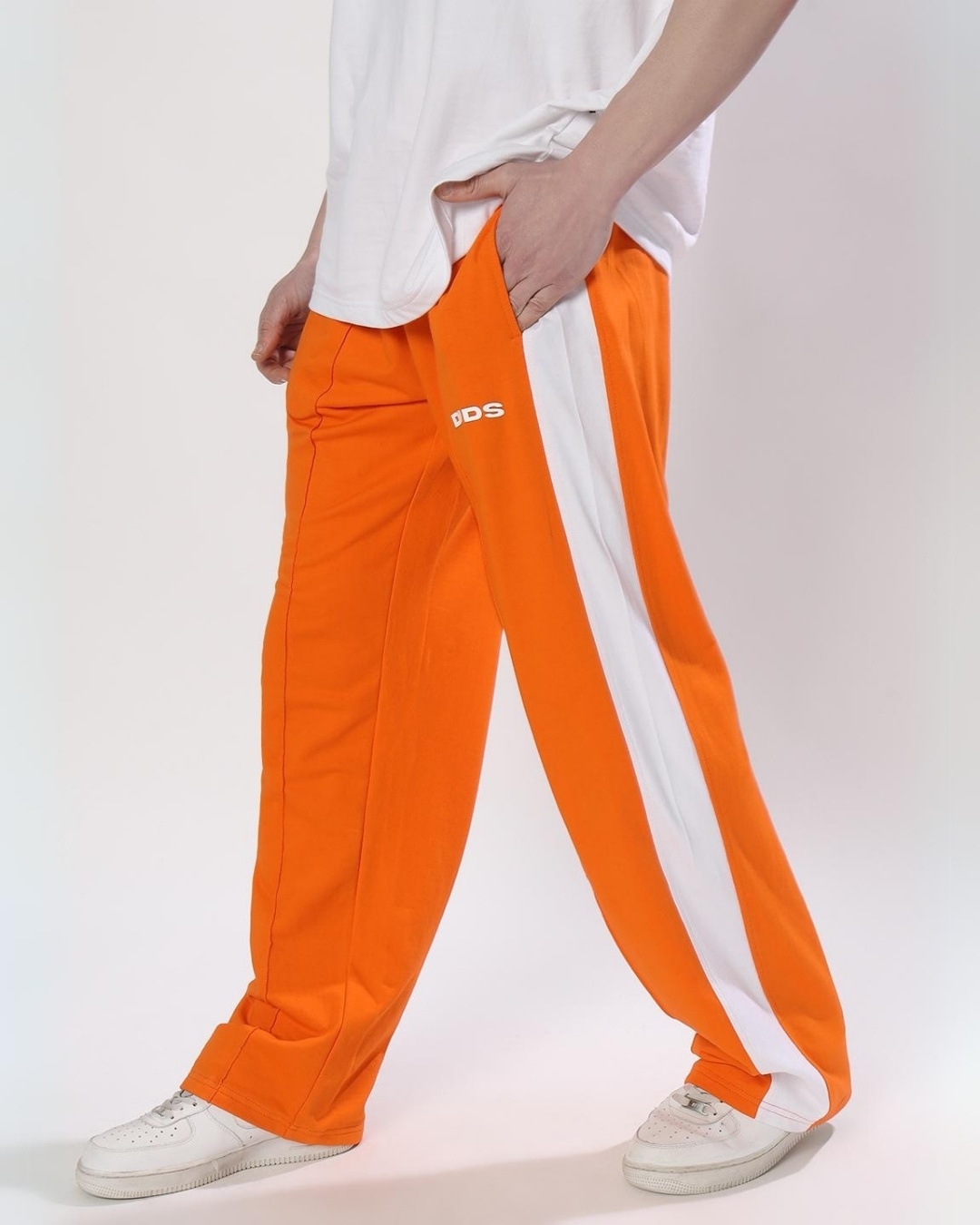 Men's Orange & White Side Panel Relaxed Fit Track Pants